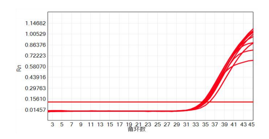 对低拷贝模板的检出能力。使用启衡星Flash I Taq Pro DNA 聚合酶所配制的荧光定量 PCR 体系,使用0.02ng人DNA模板(约5拷贝)进行扩增,10个复孔均能检出。